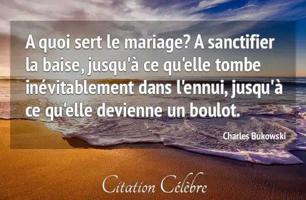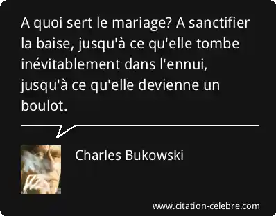 A quoi sert le mariage? A sanctifier la baise, jusqu'à ce qu'elle tombe inévitablement dans l'ennui, jusqu'à ce qu'elle devienne un boulot.