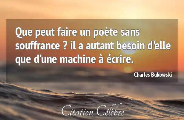 Que peut faire un poète sans souffrance ? il a autant besoin d'elle que d'une machine à écrire.