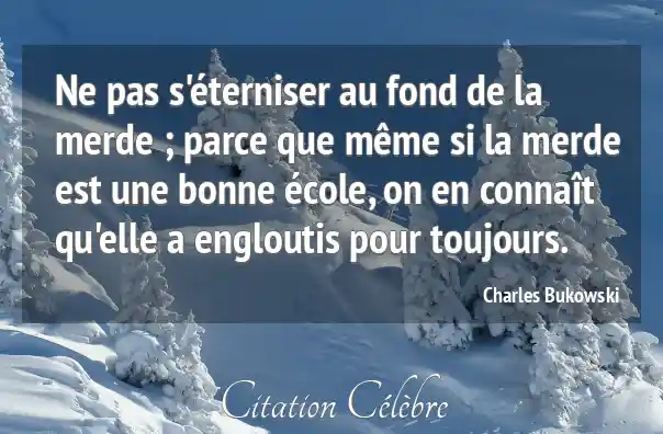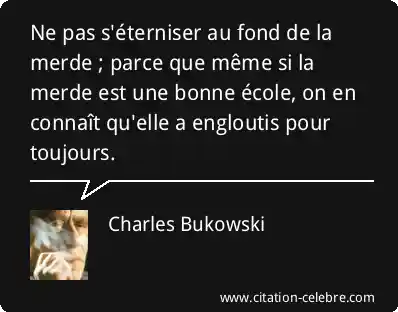 Ne pas s'éterniser au fond de la merde ; parce que même si la merde est une bonne école, on en connaît qu'elle a engloutis pour toujours.