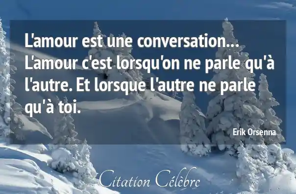 L'amour est une conversation... L'amour c'est lorsqu'on ne parle qu'à l'autre. Et lorsque l'autre ne parle qu'à toi.