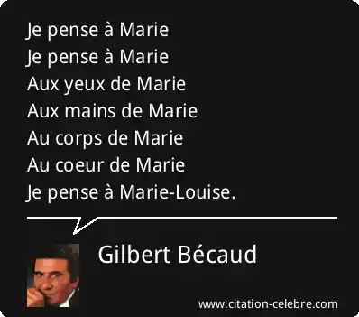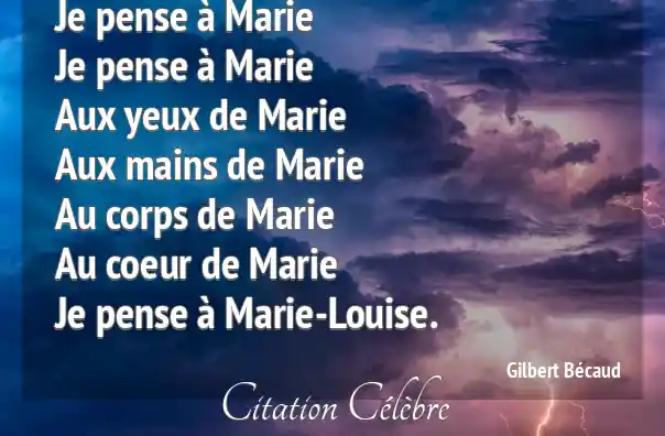 Je pense à MarieJe pense à MarieAux yeux de MarieAux mains de MarieAu corps de MarieAu coeur de MarieJe pense à Marie-Louise.