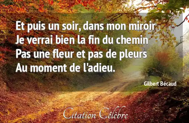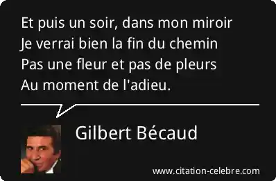Et puis un soir, dans mon miroirJe verrai bien la fin du cheminPas une fleur et pas de pleursAu moment de l'adieu.