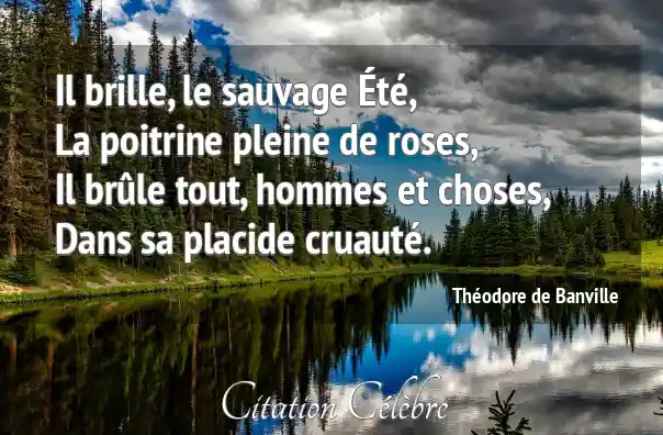 Il brille, le sauvage Été,La poitrine pleine de roses,Il brûle tout, hommes et choses,Dans sa placide cruauté.