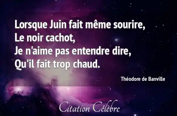 Lorsque Juin fait même sourire,Le noir cachot,Je n'aime pas entendre dire,Qu'il fait trop chaud.