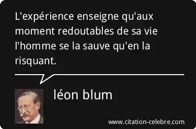 Citation léon blum vie : L'expérience enseigne qu'aux moment redoutables de sa vie l'homme se...