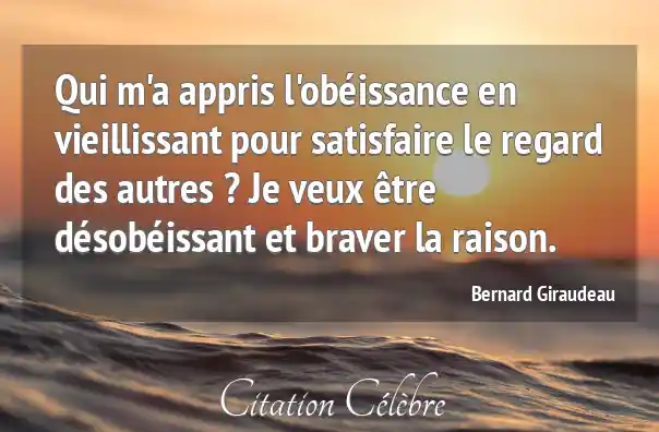 Qui m'a appris l'obéissance en vieillissant pour satisfaire le regard des autres ? Je veux être désobéissant et braver la raison.