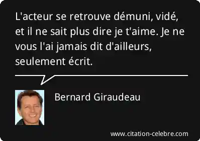 L'acteur se retrouve démuni, vidé, et il ne sait plus dire je t'aime. Je ne vous l'ai jamais dit d'ailleurs, seulement écrit.