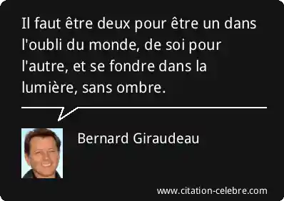 Il faut être deux pour être un dans l'oubli du monde, de soi pour l'autre, et se fondre dans la lumière, sans ombre.