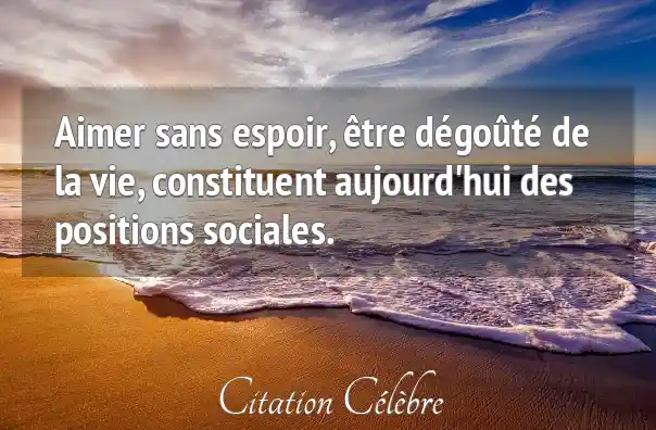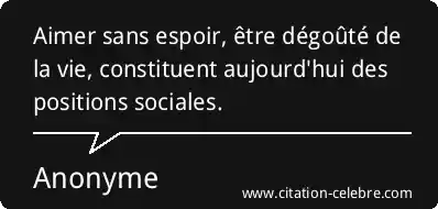 Aimer sans espoir, être dégoûté de la vie, constituent aujourd'hui des positions sociales.