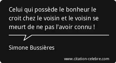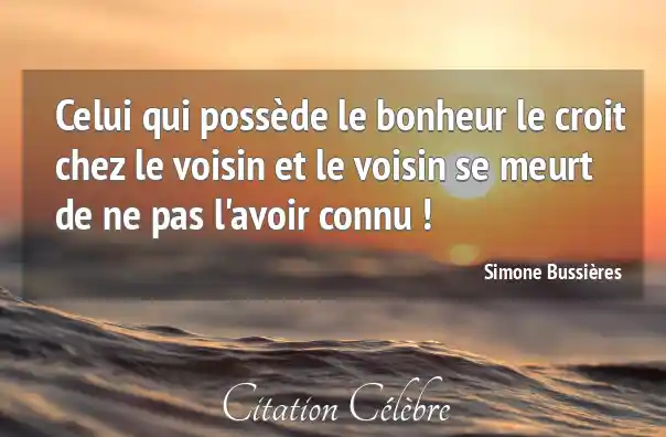 Celui qui possède le bonheur le croit chez le voisin et le voisin se meurt de ne pas l'avoir connu !