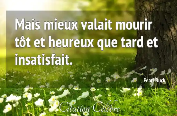 Mais mieux valait mourir tôt et heureux que tard et insatisfait.
