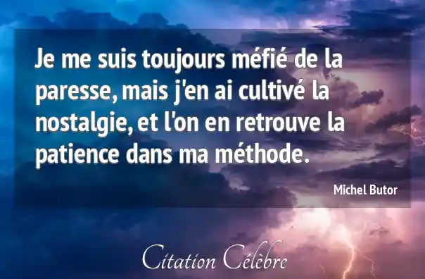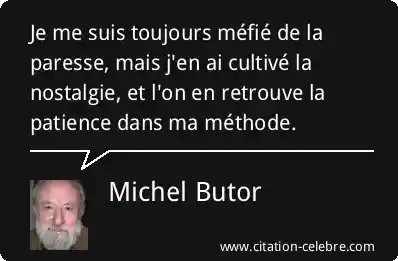 Je me suis toujours méfié de la paresse, mais j'en ai cultivé la nostalgie, et l'on en retrouve la patience dans ma méthode.