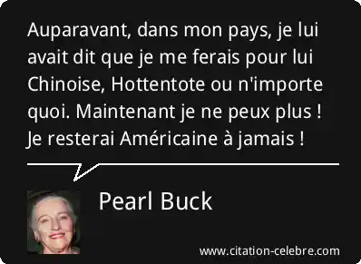 Auparavant, dans mon pays, je lui avait dit que je me ferais pour lui Chinoise, Hottentote ou n'importe quoi. Maintenant je ne peux plus ! Je resterai Américaine à jamais !