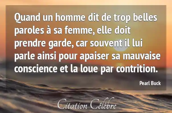 Quand un homme dit de trop belles paroles à sa femme, elle doit prendre garde, car souvent il lui parle ainsi pour apaiser sa mauvaise conscience et la loue par contrition.