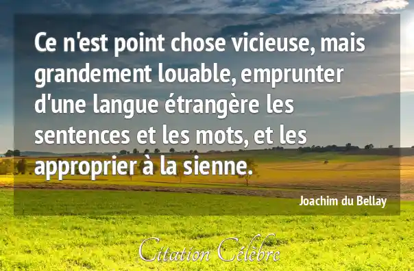 Ce n'est point chose vicieuse, mais grandement louable, emprunter d'une langue étrangère les sentences et les mots, et les approprier à la sienne.