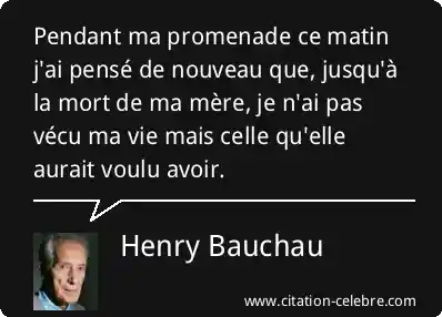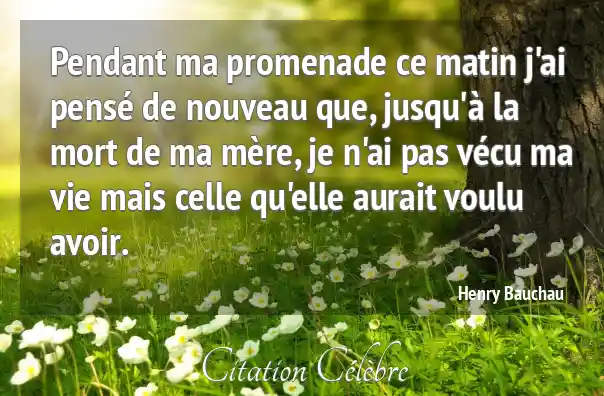 Pendant ma promenade ce matin j'ai pensé de nouveau que, jusqu'à la mort de ma mère, je n'ai pas vécu ma vie mais celle qu'elle aurait voulu avoir.
