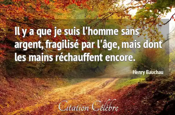 Il y a que je suis l'homme sans argent, fragilisé par l'âge, mais dont les mains réchauffent encore.