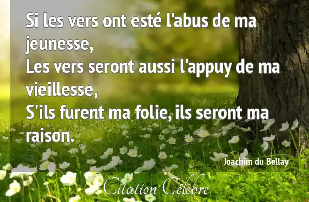 Si les vers ont esté l'abus de ma jeunesse,Les vers seront aussi l'appuy de ma vieillesse,S'ils furent ma folie, ils seront ma raison.