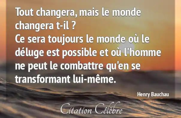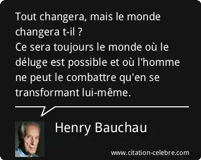 Tout changera, mais le monde changera t-il ?Ce sera toujours le monde où le déluge est possible et où l'homme ne peut le combattre qu'en se transformant lui-même.