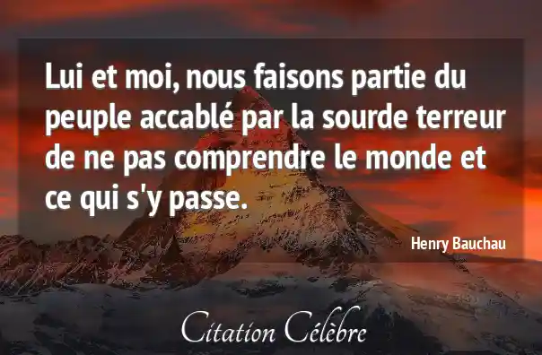 Lui et moi, nous faisons partie du peuple accablé par la sourde terreur de ne pas comprendre le monde et ce qui s'y passe.
