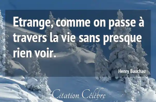 Etrange, comme on passe à travers la vie sans presque rien voir.