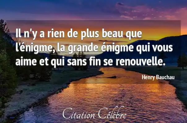 Il n'y a rien de plus beau que l'énigme, la grande énigme qui vous aime et qui sans fin se renouvelle.