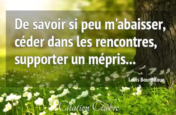 De savoir si peu m'abaisser, céder dans les rencontres, supporter un mépris...