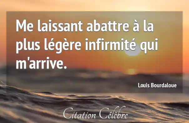 Me laissant abattre à la plus légère infirmité qui m'arrive.