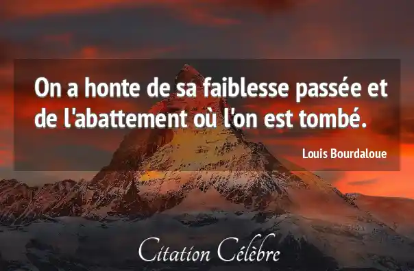 On a honte de sa faiblesse passée et de l'abattement où l'on est tombé.