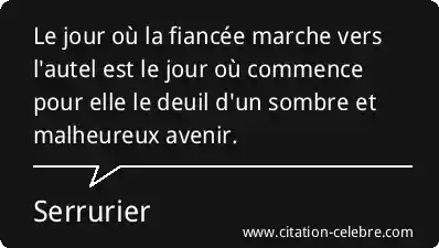 Le jour où la fiancée marche vers l'autel est le jour où commence pour elle le deuil d'un sombre et malheureux avenir.