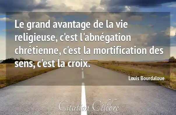 Le grand avantage de la vie religieuse, c'est l'abnégation chrétienne, c'est la mortification des sens, c'est la croix.