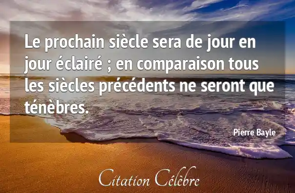 Le prochain siècle sera de jour en jour éclairé ; en comparaison tous les siècles précédents ne seront que ténèbres.