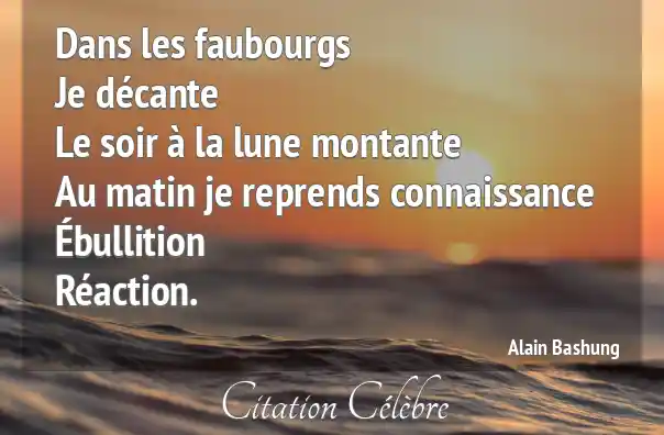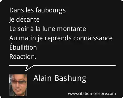 Dans les faubourgsJe décanteLe soir à la lune montanteAu matin je reprends connaissanceÉbullitionRéaction.