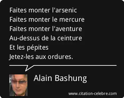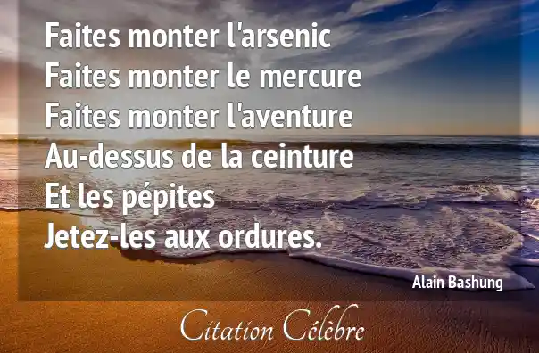 Faites monter l'arsenicFaites monter le mercureFaites monter l'aventureAu-dessus de la ceintureEt les pépitesJetez-les aux ordures.