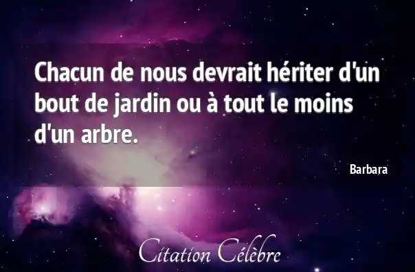 Chacun de nous devrait hériter d'un bout de jardin ou à tout le moins d'un arbre.