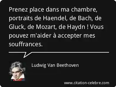 Prenez place dans ma chambre, portraits de Haendel, de Bach, de Gluck, de Mozart, de Haydn ! Vous pouvez m'aider à accepter mes souffrances.