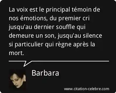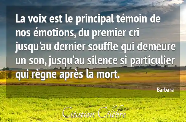 La voix est le principal témoin de nos émotions, du premier cri jusqu'au dernier souffle qui demeure un son, jusqu'au silence si particulier qui règne après la mort.