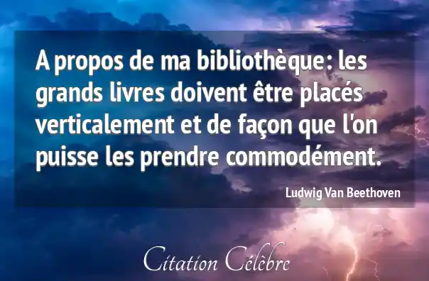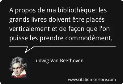 A propos de ma bibliothèque: les grands livres doivent être placés verticalement et de façon que l'on puisse les prendre commodément.