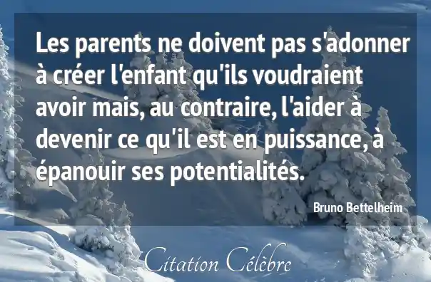 Les parents ne doivent pas s'adonner à créer l'enfant qu'ils voudraient avoir mais, au contraire, l'aider à devenir ce qu'il est en puissance, à épanouir ses potentialités.