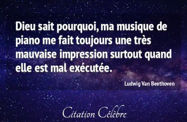 Dieu sait pourquoi, ma musique de piano me fait toujours une très mauvaise impression surtout quand elle est mal exécutée.
