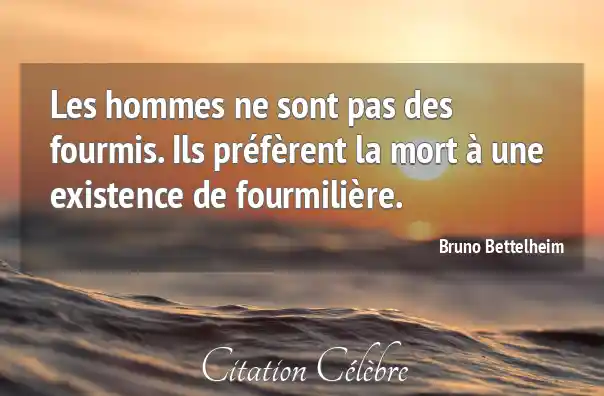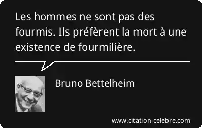 Les hommes ne sont pas des fourmis. Ils préfèrent la mort à une existence de fourmilière.