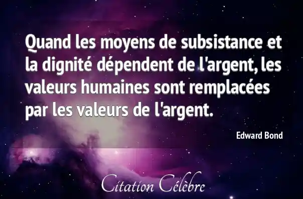Quand les moyens de subsistance et la dignité dépendent de l'argent, les valeurs humaines sont remplacées par les valeurs de l'argent.