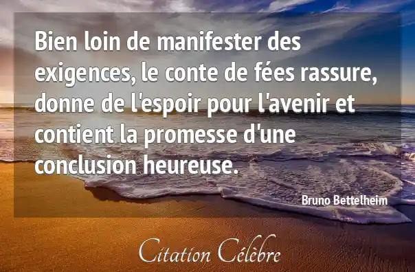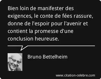 Bien loin de manifester des exigences, le conte de fées rassure, donne de l'espoir pour l'avenir et contient la promesse d'une conclusion heureuse.