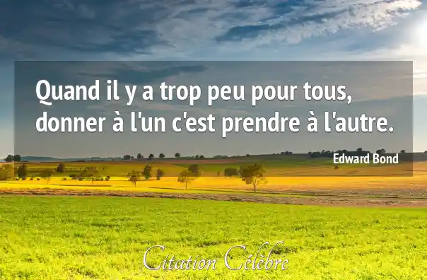 Citation Edward Bond autre : Quand il y a trop peu pour tous, donner à...