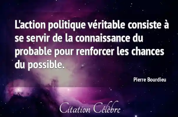 L'action politique véritable consiste à se servir de la connaissance du probable pour renforcer les chances du possible.