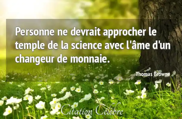 Personne ne devrait approcher le temple de la science avec l'âme d'un changeur de monnaie.