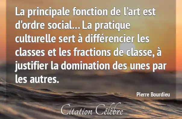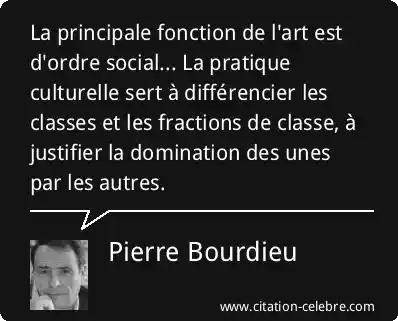 La principale fonction de l'art est d'ordre social... La pratique culturelle sert à différencier les classes et les fractions de classe, à justifier la domination des unes par les autres.