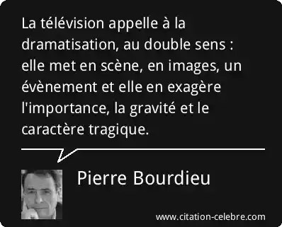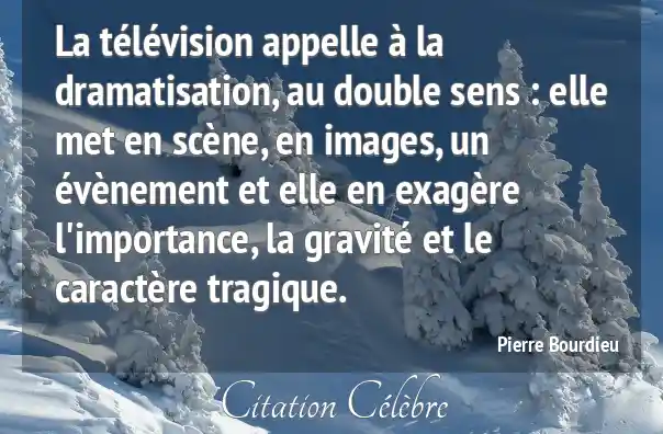La télévision appelle à la dramatisation, au double sens : elle met en scène, en images, un évènement et elle en exagère l'importance, la gravité et le caractère tragique.