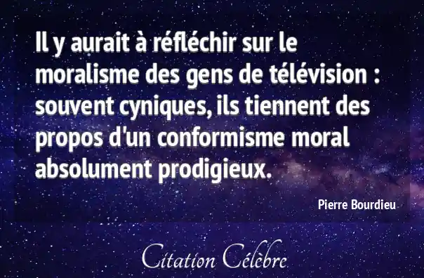 Il y aurait à réfléchir sur le moralisme des gens de télévision : souvent cyniques, ils tiennent des propos d'un conformisme moral absolument prodigieux.