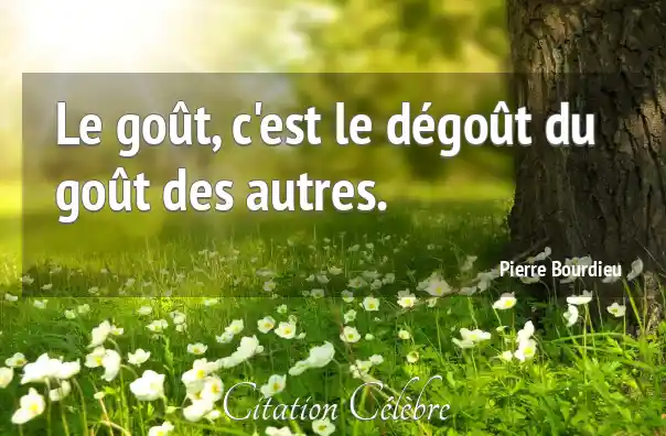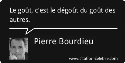 Citation Pierre Bourdieu autres : Le goût, c'est le dégoût du goût des autres....